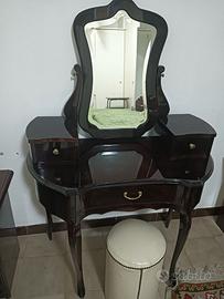 Toilette i( piuma di mogano) mobilificio Francesco Pasi, specchio mobile,1cassetto centrale e 2 cassetti laterali più piccoli,piccolo graffio sotto il marchio laterale ,compreso di sgabello Ritiro e/o spedizione a carico acquirente dopo accordi