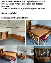 Vendo camera da letto, cucina, sala a prezzi convenienti causa trasloco. Arredi tenuti in ottime confizioni condizioni. Divano letto e poltrona regalo Sala vero legno impiallacciato rovere € 500 Camera da letto €300 Località ritiro Segrate Milano