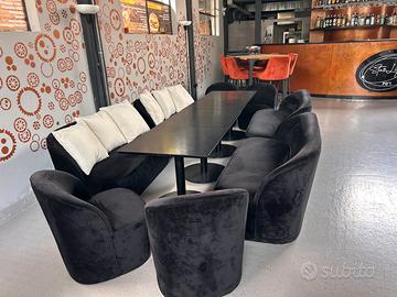 Vendo in blocco e anche separatamente varie postazioni con tavoli, sedie, sgabelli, poltrone e divanetti da bar di diverso materiale ( velluto, legno, ecc.) per arredare il locale in modo elegante per i vostri clienti offrendo il massimo del servizio. Per informazioni, vedere il materiale e prezzi contattare al 335.8192143 Michele