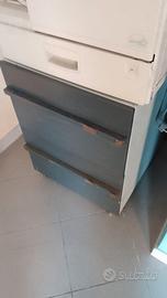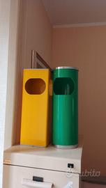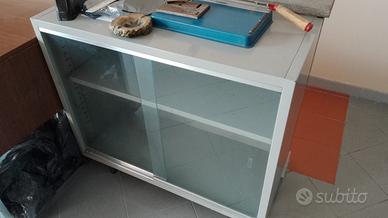 Arredi vari da ufficio: Due mobili da ufficio con vetrina 50€ c/u, misure di ogni mobile: 187 x 100 x 42cm. Portacenere giallo 20€; Portacenere verde 20€; Mobile con vetri scorrevoli 40€, misure: 95 x 40 x 85cm. Cassettiera 5€.