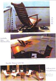 Arredi triconfort tavoli, sedie e sdraio in legno. Arredi speciali nati per essere utilizzati su barche e zone di mare, quindi trattati in modo da non essere intaccabili da sole e sale. Dispnibili diversi pezzi nuovi non utilizzati per cambio progetto. Prezzi variabili in base alla tipologia.