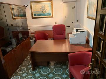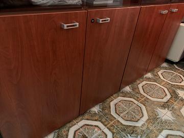Libreria 4 ante ciliegio sotto e 4 ante vetro sopra dotati accessori interni per schedario.2 mobili ciliegio due ante ciascuno , scrivania direzionale con cassettiera su ruote e penisola. Sedia 5 razze scrivania e 2 poltrone rotonde singole e una doppia tutte in pelle rissa tutto nuovo mai usato, no perditempo solo ritiro a 1500 (pagato 5000) pertanto è regalato al prezzo indicato . Il mobilio è smontabile