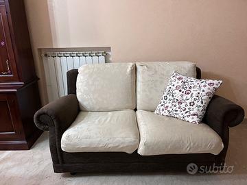 Vendo tavolo quadrato con 4 sedie e credenza in legno massello, divano due posti e scrivania