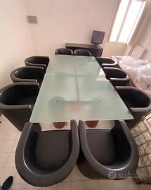 Causa trasferimento, vendo arredi uso studio/ufficio: libreria, scrivania e cassettiera in legno massello, con mensole rinforzate anti deformazione, costruzione artigianale di falegnameria. cassettiere varie. Tavolo da riunioni con 10 poltroncine Frau.