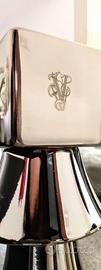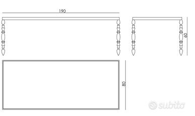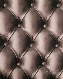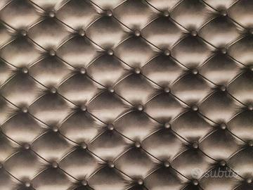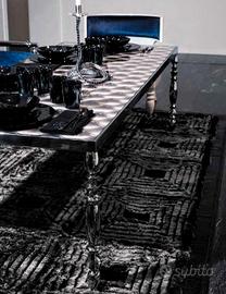 La Struttura portante è in Acciaio Cromato Tornato mentre il Top, completamente rivestito in Carta Murale con Motivo di Pelle Capitonné, è dotato di Piano in Cristallo Temperato e Bordatura in Acciaio Cromato Lucido.