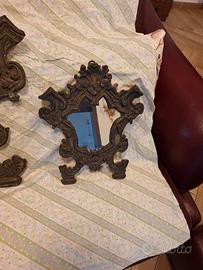 CARTAGLORIA TRITTICO con specchiera in laminato di Rame sbalzato - cesellato - argentato scuola italiana veneziana del 600/700. Misura del centrale 60x56.