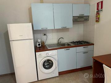 Arredamento appartamenti angolo cottura frigorifero tavolo con 4 sedie 2 letti singoli un letto matrimoniale 2 armadi aperti 2 tv 1 scrivania 1 clima 1 tavolo esterno con 4 sedie 2 comodini