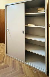 Armadietto in metallo per ufficio a due ante scorrevoli, con 4 ripiani mobili, dimensioni largezza cm 120, altezza cm 200, profondità cm 47, non smontabile.