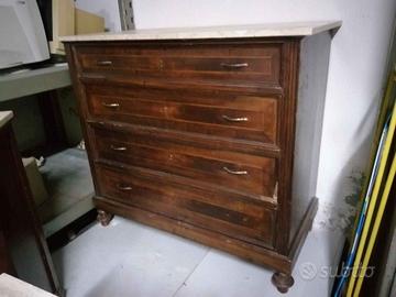 Arredo Arte Povera periodo 1920 in Legno Artigianale 1 Mobile Canterano 4 cassetti misure cm 110x50x105 2 Comodini 1 cassetto +1 anta Misure cm 40x38x85 h A completamento top di rifinitura in marmo travertino