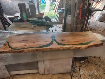 Realizzazione di qualsiasi elemento di arredo con legno pregati come mensole tavoli tavolini scrivania top bagno top cucina mobile bagno libreria consolle e molto altro con possibilità di personalizzazione con inserto in resina per interno e esterno per creare un arredo completamente unico e personalizzato per maggiori informazioni scrivetemi Grazie