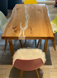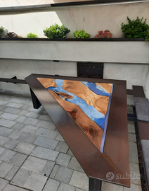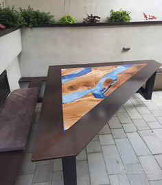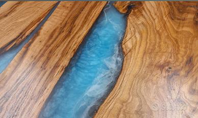 Realizzazione di qualsiasi elemento di arredo con legno pregati come mensole Tavoli tavolini scrivania top bagno consolle mobile bagno libreria mobile TV porte scale e molto altro con possibilità di personalizzazione con inserto in resina per interno e esterno per creare un arredo completamente unico e personalizzato per maggiori informazioni scrivetemi Grazie
