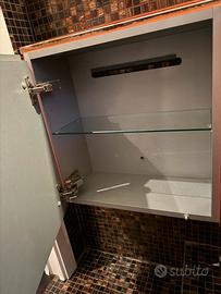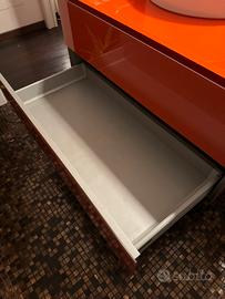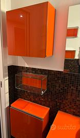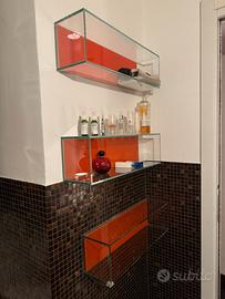 Mobile Artelinea bagno in cristallo arancione sospeso con 2 cassettoni e lavandino in appoggio. 4 mensole cubiche in cristallo 2 mobili contenitore cubici in cristallo PREZZO TRATTABILE