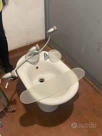 Accessori per arredo bagno, portasalviette, specchio completo di sanitari e colonna in acciaio e cristallo In buono stato