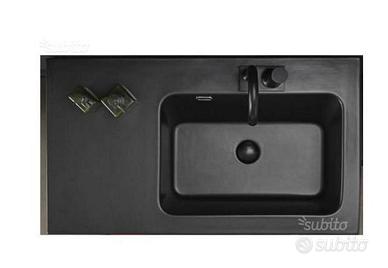 CONSOLLE IN CERAMICA BLACK MATT NERO VASCA INTEGRATA A DX