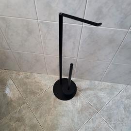 Larghezza 24 cm, profondità 11 cm, altezza 53 cm. portarotolo di carta igienica autoportante di colore nero opaco, realizzato in acciaio inossidabile.