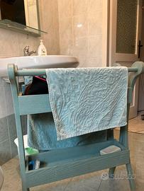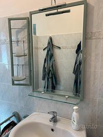 Vendo arredo bagno composto da colonnina con ante e cassetti, specchiera con luce, mensola e antina porta sapone e bicchiere, porta asciugamani mobile con ripiani porta toilettery, porta asciugamani da muro, porta carta es appendi accappatoi da parete.