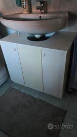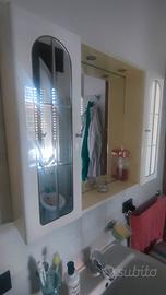 specchiera bianca laccata l.90xh70, 2 ante, con faretti ed interruttore più mobile sotto lavabo doppia anta con ripiano bianco laccato l.70 p.45 h.62. 80€. CAD. oppure tutto a 150€ tratt.