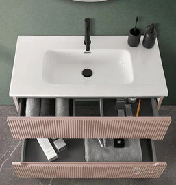 Circe 90 dà forma a un bagno in cui emozioni e intuizioni stilistiche richiamano l’eleganza dell’antica Grecia. Un’interpretazione unica di bellezza e armonia. In finitura cannettato rosa matt. Caratteristiche tecniche: Base portalavabo Circe con gola 90x45x50 lxpxh Consolle in porcellana bianca lucida 91x46x3 Cassetto soft closing Pannello frontale cannettato 3D Rubinetteria prevista: monoforo Kit fissaggio incluso