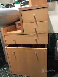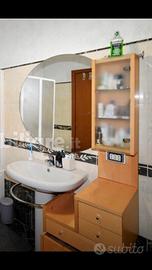 Composizione bagno comprende Colonna con vetro satinato ,specchio,appoggio con due cassetti,cassettiera con rotelle,barra porta asciugamani
