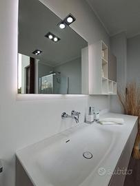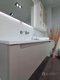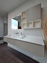 Mobile arredo Bagno modello Idro di Scavolini in laccato opaco Bianco e Visone cm 180 completo escluso rubinetto. Prodotto Nuovo scontato da Expo. ( Escluso Trasporto e Montaggio )