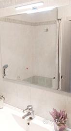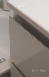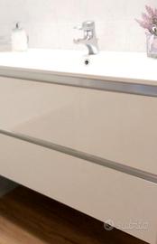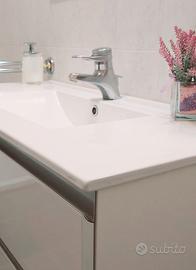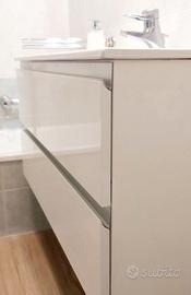 Mobiletto arredo bagno sospeso dimensioni lunghezza cm 100 e profondità cm 45 colore bianco, con lavandino in ceramica (rubinetto escluso) incassato e due cassettoni, completo di specchio con illuminazione a led Pari al nuovo.