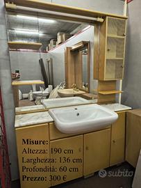 Realizzato in legno massiccio, completo di lavabo e specchio. Misure e prezzi segnati in foto.