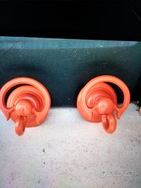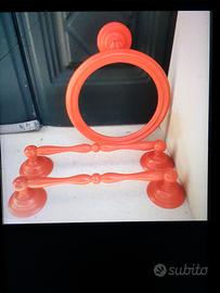 arredamento completo bagno vintage anni '70 arancione, in metallo in buono stato, specchio ovale , lampadario, applique a muro, 2 appendiabiti, 2 porta asciugamani , 1 porta salviette rotondo, 1 mensola sotto specchio