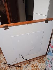 Vendo arredo completo per bagno originale anni 80. Comprende specchio con luce interna 80x75, 2 porta asciugamani, un portasapone, un portarotolo, una mensola porta asciugamani piccoli, un portaspazzolini ed un appendiabiti tutto in OTTIME CONDIZIONI. Solamente il portasapone ha il legno un pò macchiato. Vendo per rinnovo bagno. Solo consegna a mano nella zona dei castelli romani. Prezzo trattabile. Si vende in blocco o separatamente su richiesta.