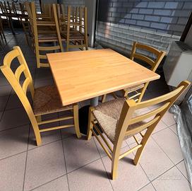 Vendo arredo completo per bar, bistrot o sala colazioni composto da: •33 sedie in legno con seduta in paglia intrecciata •9 tavoli quadrati in legno chiaro •Dimensioni tavoli: 80x80 cm – altezza 75 cm Arredo solido e funzionale, ideale per locali, B&B, sale colazioni o ambienti rustici/moderni. Le sedie sono leggere ma resistenti, i tavoli hanno una struttura stabile e piano in legno massello. Condizioni generali buone, normali segni di utilizzo ma tutto perfettamente utilizzabile da subito. Vendita preferibilmente in blocco. Vendita vista e piaciuta. Prezzo: •Sedie: € 30 cad. •Tavoli: € 70 cad. Se venduto in blocco prezzo trattabile. Ritiro a carico dell'acquirente.