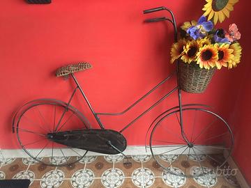 vendo finta bicicletta (metà) per arredo interno, in ferro e vimini, sia da appoggio che appesa al muro, dimensioni 1m x 1m circa. euro 30. ritiro a mano