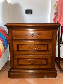 – Due comodini abbinati, ciascuno con tre ampi cassetti. Dimensioni: 67cm x 65cm x 42cm.