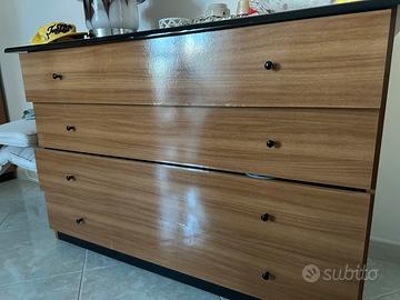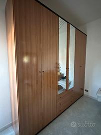 Vendo per cambio casa intero set camera da letto compreso di : •Mobile con 6 ante (2 specchiate) Altezza 2,53 m Spessore 57 Larghezza 2.86 • comodini • cassettiera I mobili si presentano privi di usura, residui di colla nella parte interna di due ante( facilmente removibile) Smontaggio e ritiro a carico dell’acquirente, prezzo trattabile