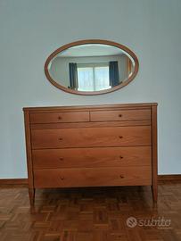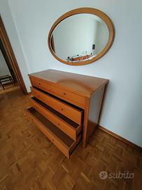 Completa di armadio, struttura del letto con doghe, 2 comodini, comò con cassetti, specchio e servo muto.