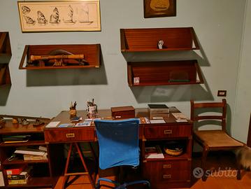 vendesi arredo camera di legno stile vecchia marina letto con cassettiera comodino libreria scrivania con sedia mobile per tv ritiro Roma zona Eur