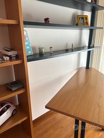 Arredi per camera made in Italy, composto da libreria con tavola girevole, letto e comodino.