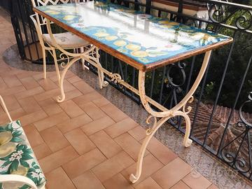 Tavolo in pietra lavica ,misure , cm. 60x125x2 Piano di appoggio in ferro ( artigianale ) altezza cm. 90 .
