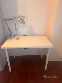 Tavolo da studio/lavoro con lampada fissata sopra. Piano spazioso ideale per PC, libri e materiale da ufficio. Perfetto per smart working o cameretta.