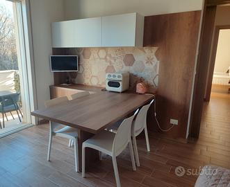 - Composizione tavolo penisola con 4 sedie e con contenitori