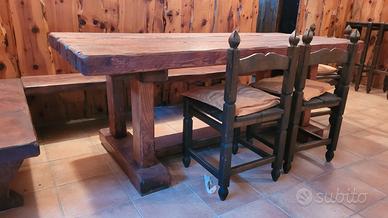 Vendo taverna completa come in foto panca ad angolo sospesa tavolone massiccio sedie sgabelli e rivestimento pareti tavolo e panche in legno massiccio di castagno