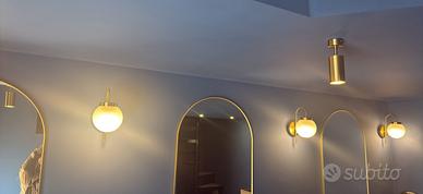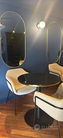 Vendo per cambio progetto arredo moderno in ottime condizioni, acquistato ad aprile di quest’anno. 📍 Composizione vendita: ✔️ 3 tavolini con piano in vetro laccato nero e dettagli eleganti ✔️ 6 poltroncine color sabbia in tessuto, molto comode e raffinate ✔️ 3 specchi decorativi da parete stile contemporaneo ✔️ 6 applique da muro coordinate ✔️ 3 faretti da parete 1 Lampadario Perfetto per: • lounge bar • bistrot • hall hotel • showroom • studio professionale • locale di design • casa moderna / open space
