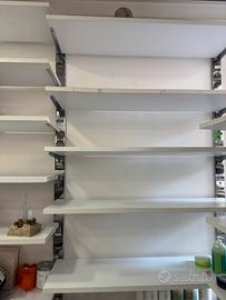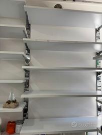 Si vende arredo componibile comprensivo di: - 30 mensole bianche (115x35) - 30 staffe d’acciaio (235 x7) Valore stimato circa 600€ Prezzo di vendita €250 Ottime condizioni