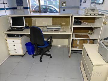 Vendo arredo per ufficio composto da: 2 scrivanie 2 armadi 1 banco clienti con scrivania e cassettiera 2 poltrone 3 sedie da ufficio 1 panca per sala d’attesa 4 sedie per sala d’attesa Appendi abiti 3 mobiletti con mensole 1 mobiletto con cassetti con chiave Articoli tutti in buone condizioni, vendita per chiusura attività. Prezzo trattabile e possibilità di acquistare separatamente gli articoli.