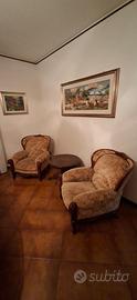 - 2 poltrone in legno massiccio, rivestite di velluto ed imbottite (identtiche alle sedie) 800€