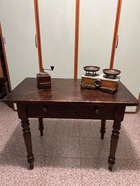 Seggiolone da arredamento ,macinino da caffè ,tavolo(scrittoio), bilancia.il tavolo misura H74. L55. LUNG 100,il seggiolone la seduta é H 54 e LAR 40 acquistabile anche singolarmente segg 40€ maci 20€ tavolo 50€ bila 30€