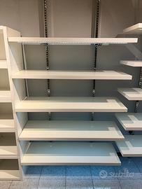 Ogni modulo ha mensole della seguente dimensione 120 cm*40 cm . La struttura portante in acciaio ha l’altezza di 242 cm.