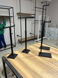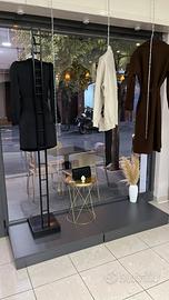 Vendesi arredamento completo per negozio di abbigliamento in condizioni pari al nuovo, utilizzato solo da marzo 2023 a ottobre 2024. DESCRIZIONE: Arredo moderno e minimal in stile industriale, ideale per boutique, showroom o negozi moda. Design elegante con struttura in metallo nero e finiture effetto legno. COMPOSIZIONE: * Bancone cassa completo di postazione PC e scaffalature * Tavoli espositivi (diverse dimensioni) * Stand appendiabiti centrali regolabili * Strutture a parete con ripiani e barre appendiabiti * Espositori per accessori (borse, cinture, ecc.) CONDIZIONI: * Pari al nuovo * Nessun difetto evidente * Sempre mantenuto con cura VENDITA: Preferibilmente in blocco completo. DISPONIBILITÀ: Immediata. Per maggiori informazioni, dettagli, misure o per fissare una visita, contattami in privato.