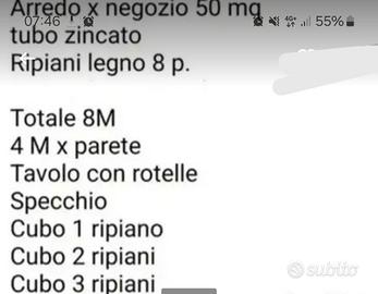 arredo cabina armadio o negozio tubo zincato e ripiani in legno 3 cubi 2 cubi 1 cubo 1 tavolo con rotelle 1 specchio