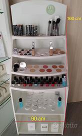 Vendesi elegante arredo professionale per negozio di profumi alla spina o cosmetici. Realizzato in legno bianco laccato con retroilluminazione, è dotato di dispenser per l'erogazione di profumi, detersivi e altri prodotti liquidi. I dispenser sono completamente removibili, permettendo ai moduli di essere utilizzati anche come semplici vetrine espositive adatte a qualsiasi tipo di merce.