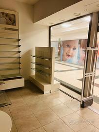 Vendesi arredo per negozio e parafarmacia. L'arredo è in buonissimo stato e comprende scafalature, cassettiere, bancone, ripiani, portaripiani, isole, separatori.Possibilità di tradporto e montaggio .