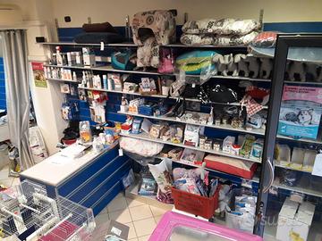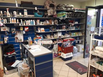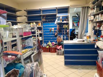 Arredo scaffalatura componibile e modificabile in legno e metallo con bancone accoglienza di circa 13 metri lineari.